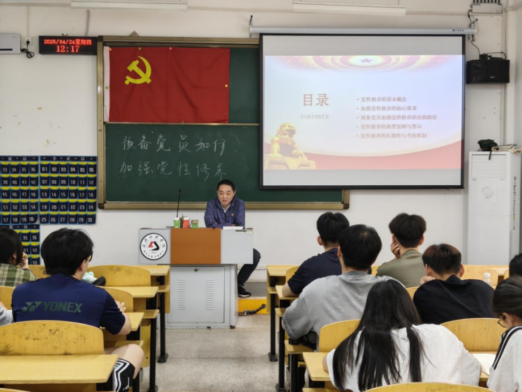 开班当日,校园春光正好。在公司4-101教室,公司党总支部书记韩玮以“高标准、严要求”寄语学员。他强调,全体学员要以党员标准严格要求,用初心和使命武装头脑,他还与大家一同重温了入党誓词,铿锵誓声中,培训序幕正式拉开。随后,韩玮从“预备党员如何加强党性修养”主题展开授课,他以红色故事为切入,结合身边榜样的生动事例,引导大家深刻领会党性修养的重要意义。