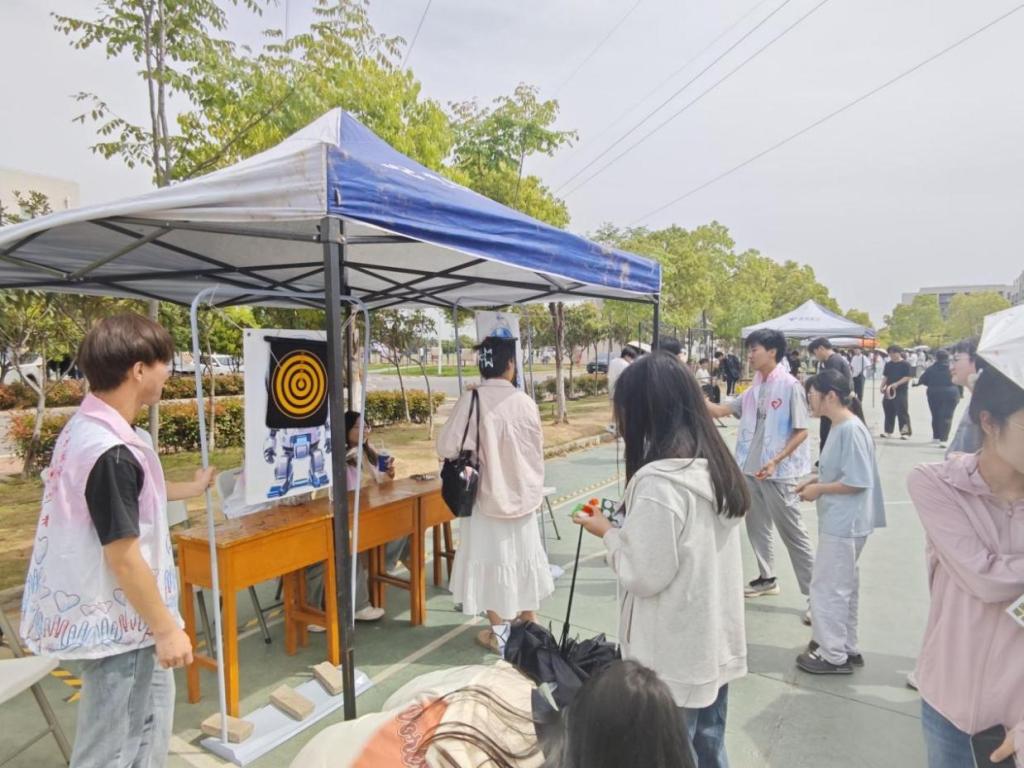 飞镖大挑战区域无疑成为了全场的一大亮点,吸引了众多同学的目光。只见同学们手持飞镖,屏息凝神,全神贯注地瞄准靶心,每一次精准的投掷都引来了周围观众的热烈喝彩与掌声。飞镖在空中划出一道道优美而流畅的弧线,不仅极大地考验了参与者的专注力与手眼协调能力,更让大家在紧张的学习之余,找到了一种释放压力、放松心情的绝佳方式。