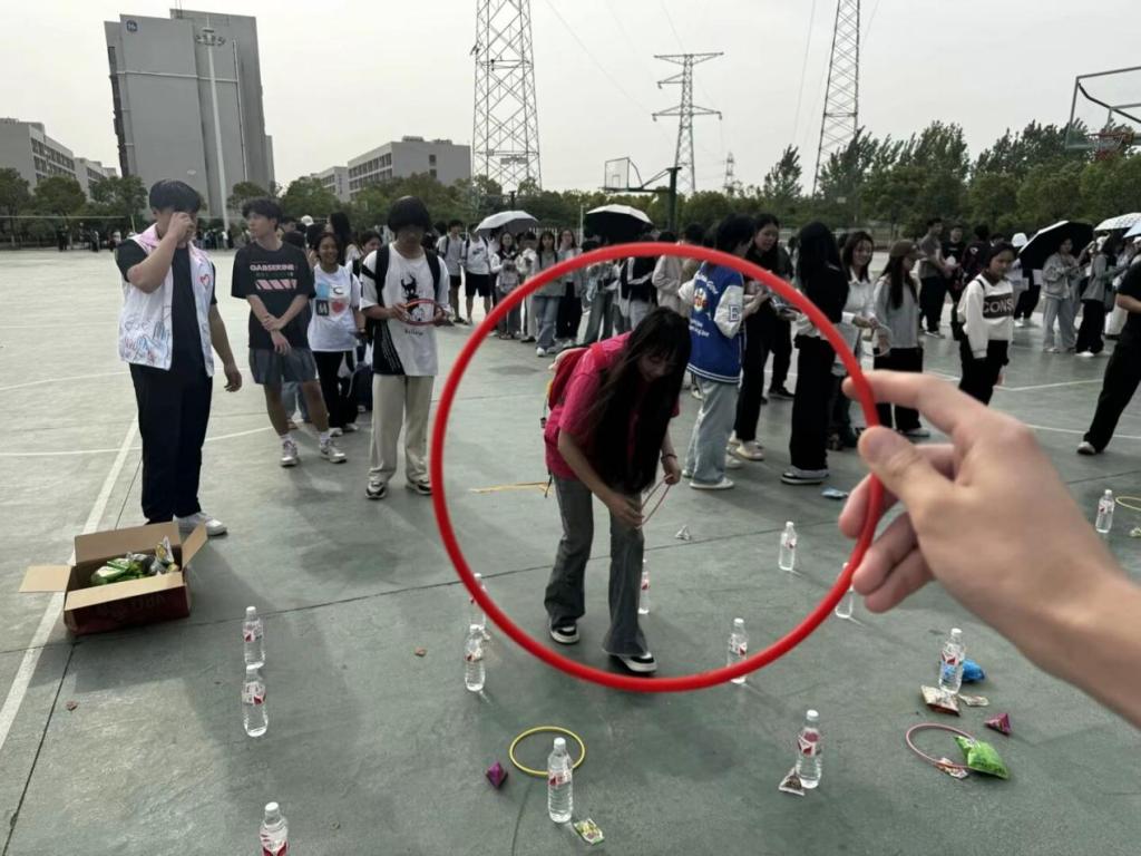 套圈大作战同样热闹非凡,同学们手持五彩斑斓的项圈,瞄准目标奖品奋力投掷。每当成功套中奖品,欢呼声与尖叫声便响彻全场,瞬间点燃了现场氛围。这个环节不仅考验了同学们的投掷技巧与精准度,更让大家在轻松愉快的环境中收获了大大的惊喜与满足。