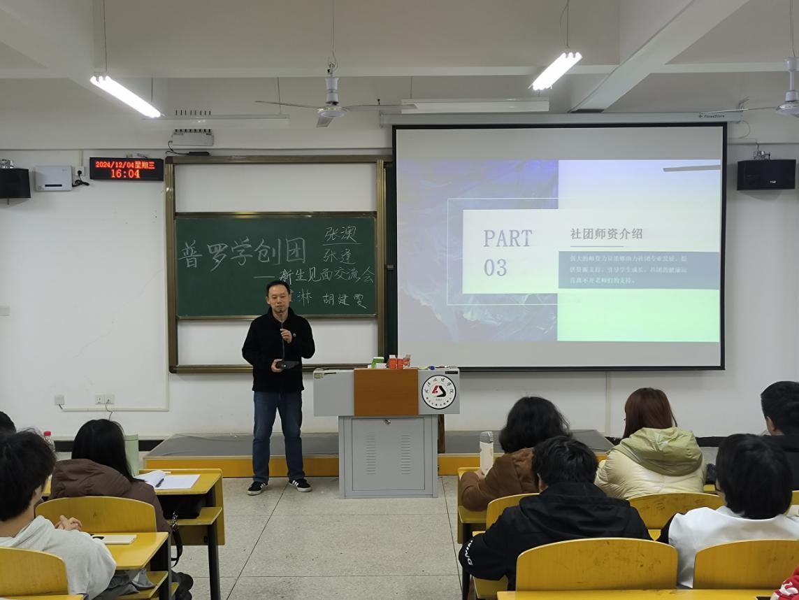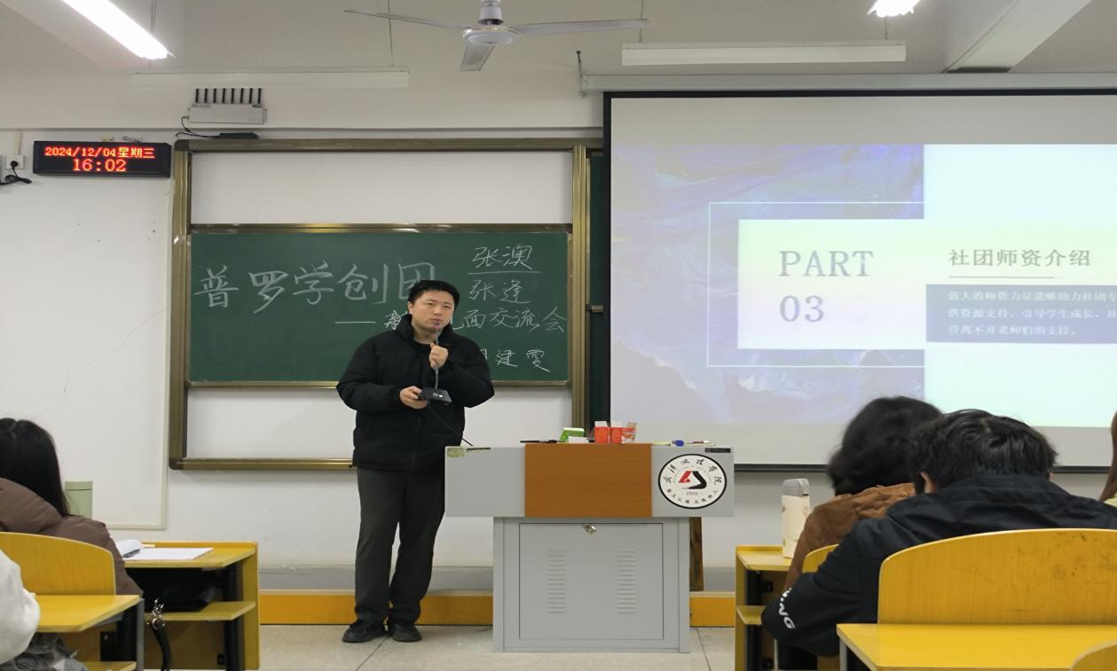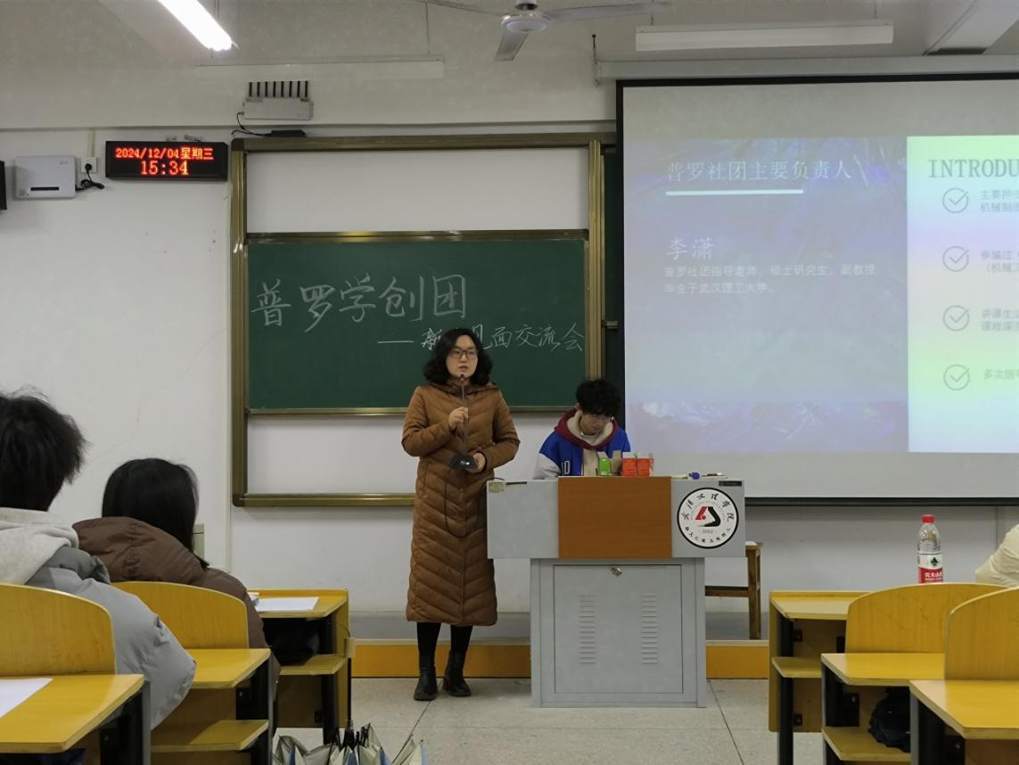 会议开始,指导老师李潇介绍了“普罗学创团”。她讲到,该社团2015年创立,如今规模日益壮大,社团已成为员工们自主学习的交流平台,不仅激发了同学们的学习热情与积极性,也为各类学科竞赛的培训和选拔注入了强劲动力。