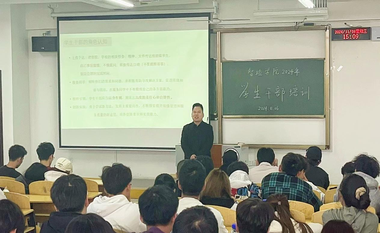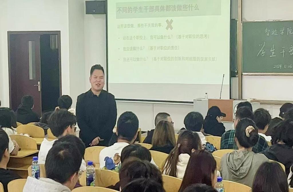 为全面提升2024级行政班级员工干部的角色认知、责任感与实践能力。11月6日,yl23455永利在5栋225教室成功举办了一场意义非凡的员工干部培训活动。此次培训由公司辅导员孙丰主讲,2024级全体员工干部齐聚一堂,共同参与了这场关于学习、管理、生活的思想交流。