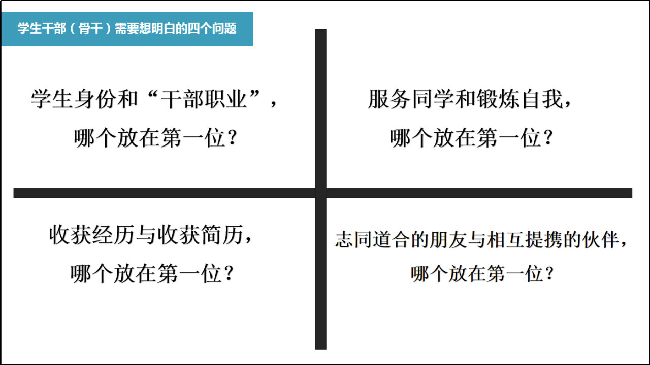 最后,孙丰从学习方式、生活方式、思想观念、远大理想等多个角度进行了全面总结。他强调,员工干部应始终坚持员工身份第一的原则,牢记自己的首要任务是学习;在服务同学与锻炼自我之间找到平衡点,实现个人成长与服务他人的双赢;注重积累实际经验和提升综合素质,而非单纯追求简历上的光鲜亮丽;珍惜志同道合的朋友和相互提携的伙伴,共同构建积极向上的校园文化氛围。