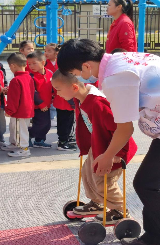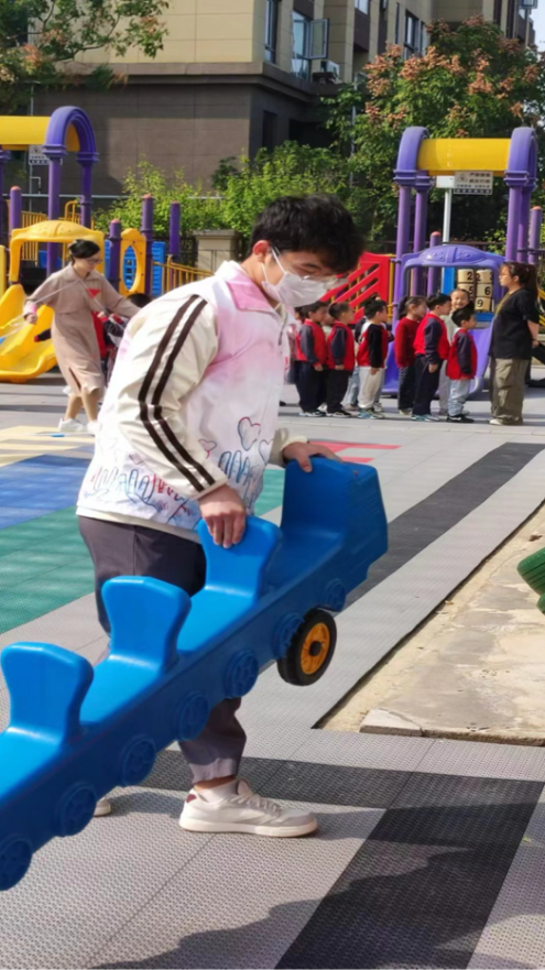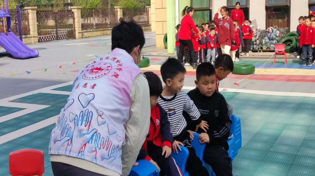 随着孩子们的欢声笑语,运动会正式拉开帷幕。志愿者们编成六个小组,分别负责六个趣味项目的引导工作。这些游戏既有传统的翻山越岭、毛毛虫接力赛,也有充满创意的风火轮、小乌龟过河。每个项目中,志愿者都耐心细致地和孩子们进行玩耍,确保他们既能享受到运动的乐趣,又能保证平稳和安全。