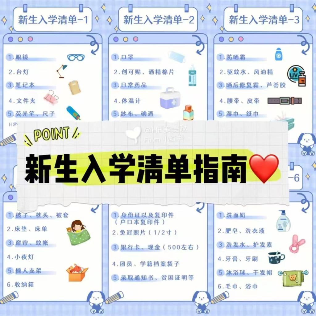 生活类:床上用品、常用医药品(如感冒药、退烧药、止泻药、创口贴等)、水杯、衣架、粘钩、插排等。