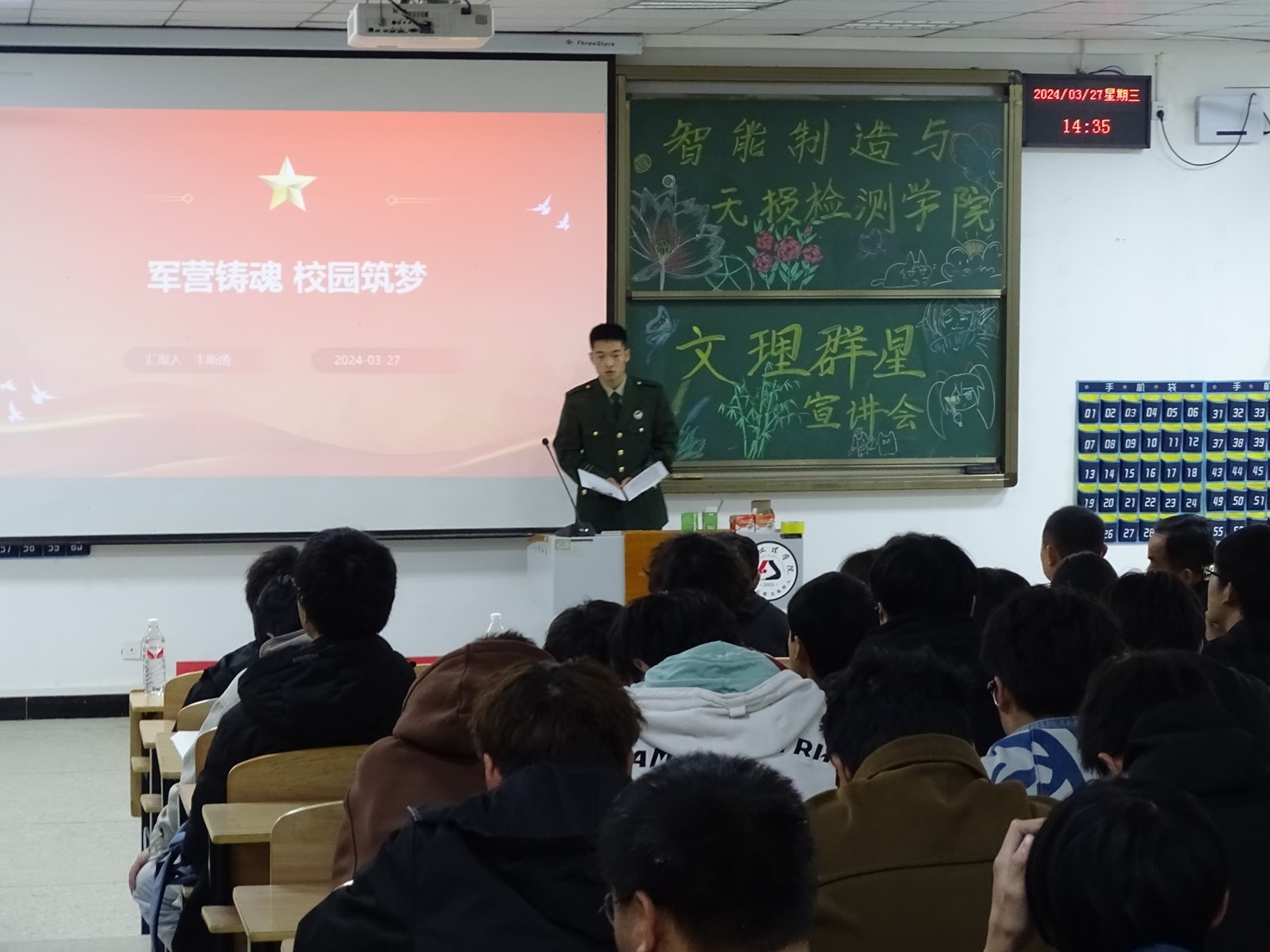 为了深入推进三全育人工作,在校园中强化“朋辈导师”的影响力,以员工先进事迹为抓手,不断引导员工朝着积极阳光的方向奋斗。3月27日,yl23455永利在4栋121教室开展了首场“文理群星”宣讲会。yl23455永利经理李继高、党总支书记韩玮、副经理张莹及各辅导员出席本次活动,公司优秀员工代表以及一年级新生参与其中,2023级机制班罗荣尧同学全场主持。