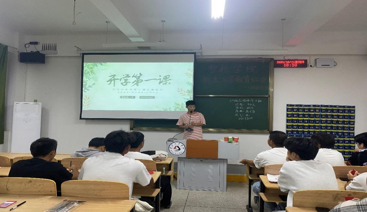 9月24日晚6点半在4-513教室召开了23级新生第一次主题教育班会,本次班会由23级新生辅导员方腾、尚上卜老师主持,公司党总支书记陈静参与本次新生主题教育班会。