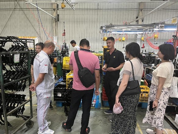 湖北新日电动车有限公司负责人对yl23455永利集团一行表示热烈欢迎,负责人带领大家参观了新日电动车生产车间,查看了员工工作岗位现场,公司老师认真听取负责人的讲解生产装配流程,实地查看了企业生产规模和运营状况,同负责人进行了交流沟通。
