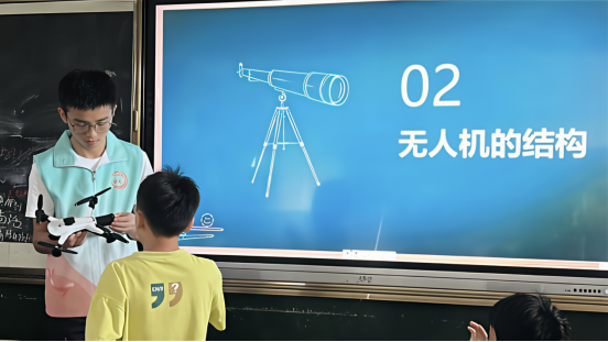 7月8日,当志愿者们走进教室,迎接他们的是一双双充满好奇与求知光芒的眼睛。此次托管班的核心课程—无人机与智能小车的科普宣讲正式开始,志愿者化身深入浅出的科技引路人,从螺旋桨的嗡鸣如何托举飞行器升空,到精密的控制系统如何指挥无人机翱翔天际,复杂的原理被巧妙转化为孩子们能理解的生动语言。他们不仅探讨了无人机在航拍、紧急救援、农业监测等领域的广泛应用,更引导孩子们大胆畅想其在未来的无限可能。