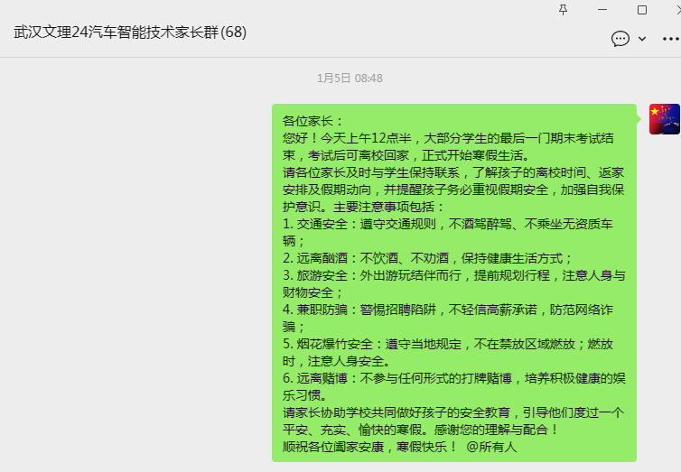 通过此次班会,同学们不仅增强了安全防范意识,也感受到了公司的温暖关怀。大家纷纷表示,将牢记师长嘱托,做好自我管理,平安返乡,合理安排假期,以更加昂扬的姿态迎接新的一年。