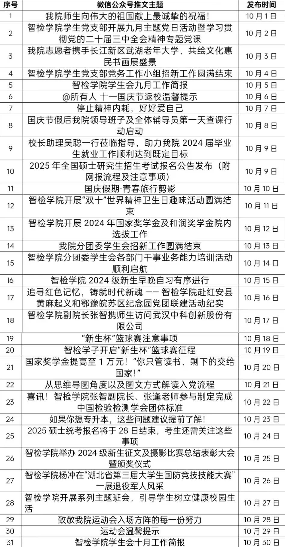 2. 召开十月份例会;