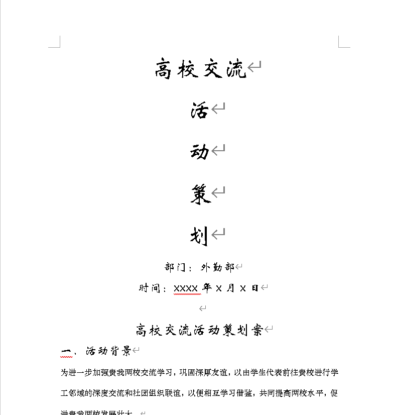 1. 起草“高校交流活动”策划案;
