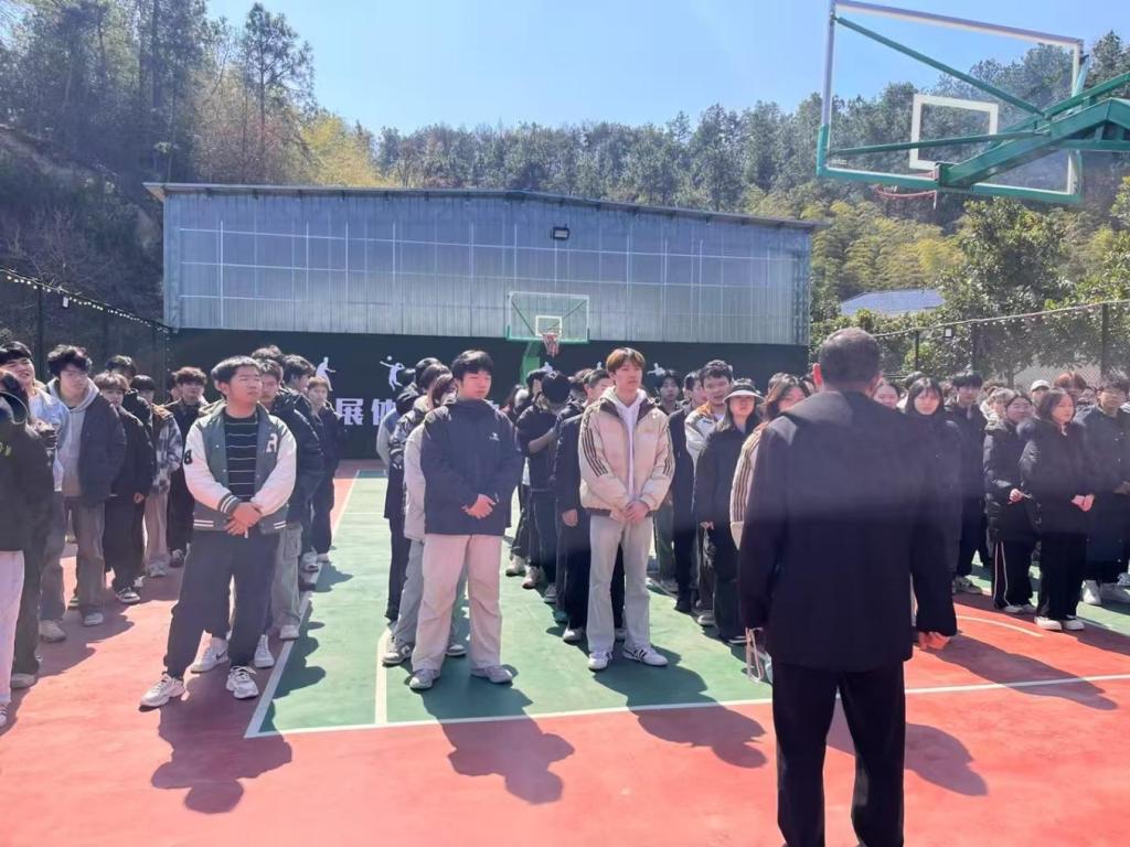 大巴抵达劳动教育基地后,员工有序卸载行李并参加了开幕仪式。仪式上,基地负责人强调了:“山区劳动遵循安全准则,要求同学们将专业逻辑注入山水之间的劳动课堂。”同时,负责人还介绍了主要劳动事项:“乾坤大挪移”“霹雳无敌手”“我家厨房”各板块具体的劳动内容。