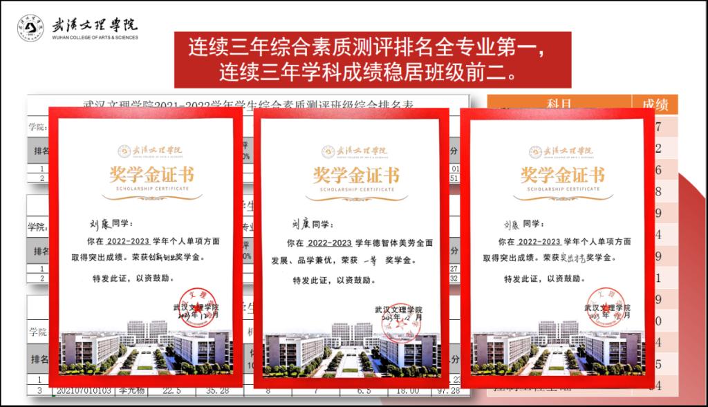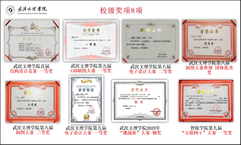 在大学的学习生涯中,刘康始终秉持着对知识的渴望和对专业的热爱,连续三年综合素质测评排名专业第一,连续三年学科成绩稳居班级前二,荣获“一等奖学金”、“创新创业奖学金”、“突出才艺奖学金”。精通各类专业软件技术:CAD、SolidWorks以及3D打印等,积极参加公司组织的相关学科竞赛,获得校级荣誉8项。近年来,带领团队与985、211名校员工多次同台竞技,为公司争得荣誉。在2024教育部认可的学科竞赛目录中,累计荣获国家级A类奖项5项、省级A类奖项6项等。