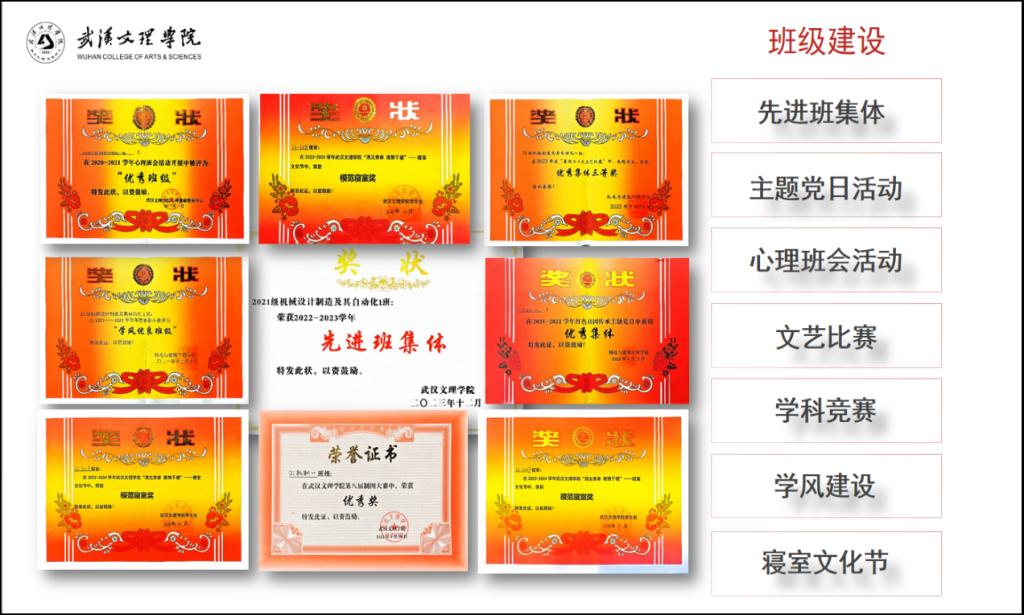 作为班级班长兼团支书,他把责任和使命扛在肩上,不断强化自身能力,连续三年团学干部培训考核合格,带领全班同学积极向上、向好发展,班级在主题党日、心理班会、文艺比赛、学科竞赛、学风建设、寝室文化节等方面荣获共计10项集体荣誉。班级在上一学年被公司评为 “先进班集体”。个人因表现优秀,被评为“优秀员工干部标兵”、“优秀共青团干部”、“优秀共青团员”。