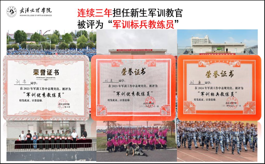 退役复学重返校园的他依然以“有灵魂、有本事、有血性、有品德”,四有作为人生目标。一年级,刘康便郑重向党组织递交入党申请书,经过不懈奋斗,成为了一名光荣的中共党员。作为退役老员工,积极响应公司号召,连续三年担任新生军训教官,被评为“军训标兵教练员”。
