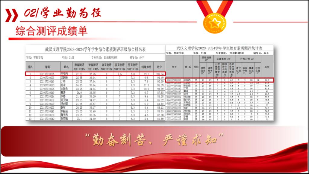 作为员工干部,只有把学习搞好了,才有更大的能力去服务同学、回馈社会。在校期间,田亚西上课认真听讲、下课及时巩固,一个知识学三遍,并帮助班级员工解决学习上的困难,在学中教、教中学,让自己与同学收获双向进步。三年来,他的课业成绩始终位列班级前列,综合测评稳居班级第一,也因此获得了“学习标兵”“一等奖学金”等荣誉。