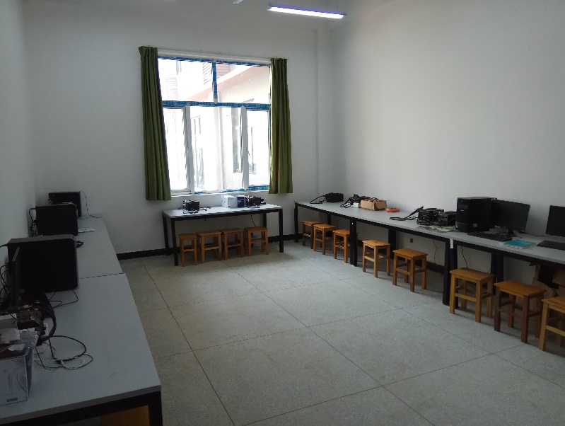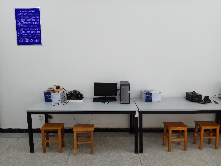 实验室设备包括:组合式枪焊台12套,单片机开发板套装8套,投影仪1台,电脑8台,实验操作台8张。