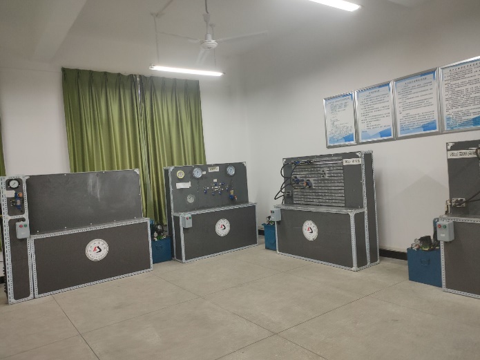 机电系统测控实验室,使用面积65平方米,位于2号实验楼205教室,主要承担械设计制造及其自动化专业、新能源汽修专业员工的实验教学。实验室同时还承担液压与气压传动的实训。