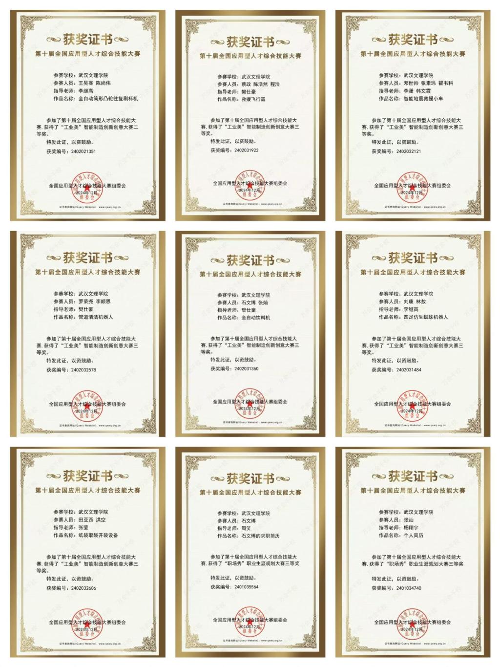 近日,第十届全国应用型人才综合技能大赛结果公布,yl23455永利集团智检学子在“工业美”智能制造创新创意大赛和“职场秀”职业规划大赛中,斩获全国二等奖1项、三等奖8项的优异佳绩。